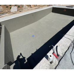 Gaine d’étanchéité liquide à base de ciment fibro-renforcée pour l'étanchéité des terrasses, des balcons, des bassins, des piscines avec la pose d'un carrelage. Grâce à la présence des fibres en polypropylène, ce produit permet une application sans treillis de renfort.
